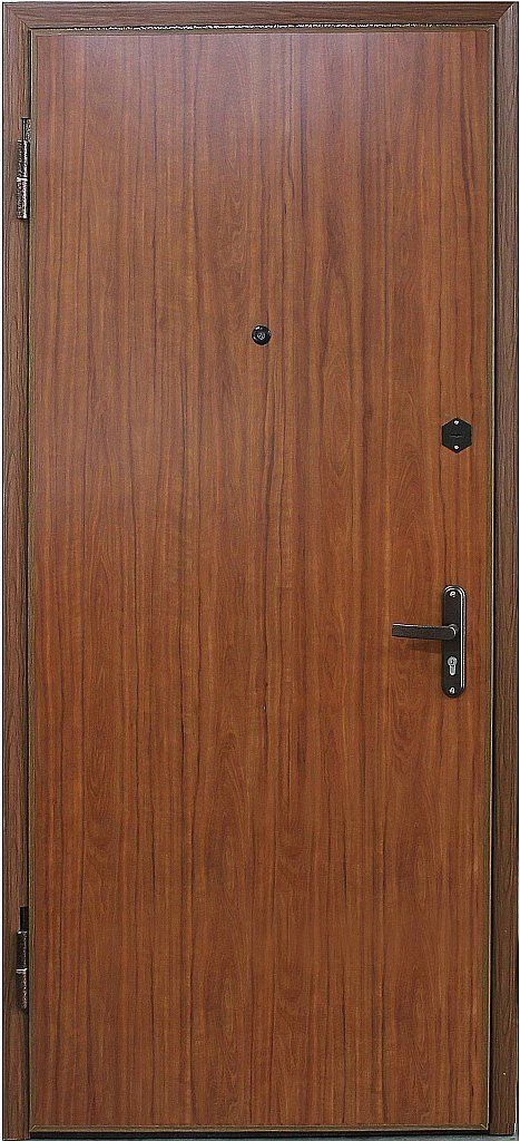 Ламинат - это доска из ДВП толщиной 4-5 мм с четырехслойным покрытием. Визуально он не отличается от натуральной древесины. Рисунок ламинированной доски может быть гладким и имитировать древесный спил или рельефным, имитирующим структуру дерева. Разнообразная цветовая гамма этого материала позволяет изготовить дверь, которая будет отлично смотреться в интерьере как квартиры, так и офиса.