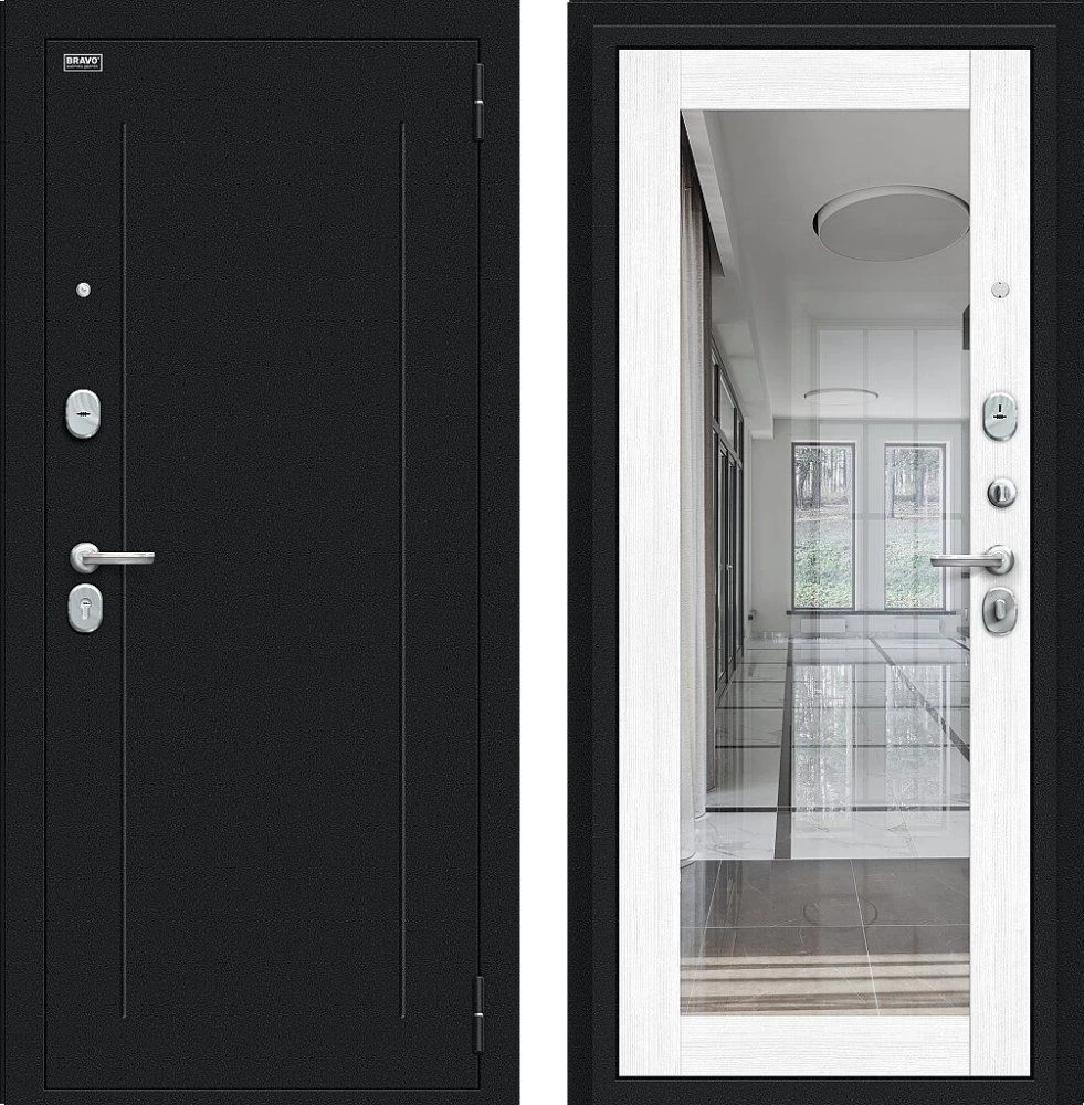 Надежная входная Дверь Браво Флэш Букле черное/Snow Melinga премиум класса по цене 32 913 руб. Большая толщина стали защитит от проникновения в ваш дом, квартиру или коттедж. Используется очень качественная фурнитура: замки, цилиндры, ручки, защелки. Покрытие и отделка двери изготовлено под внимательным контролем производителя. Дверь имеет долгий срок службы и гарантию.