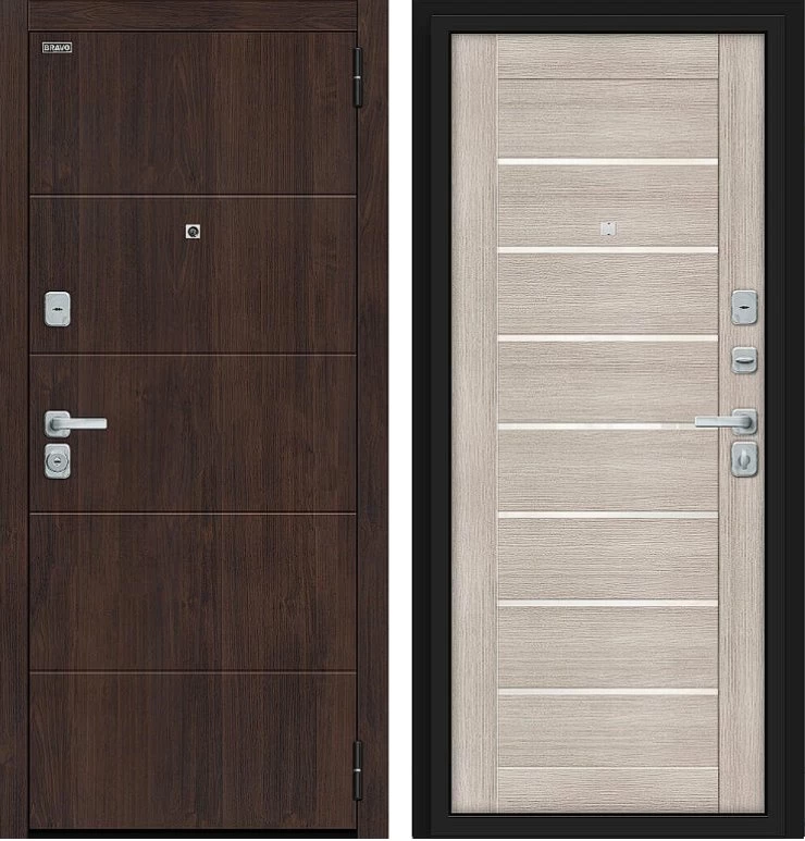 Надежная входная Дверь Браво Прайм/BChrome Almon/Cappuccino Melinga премиум класса по цене 39 813 руб. Большая толщина стали защитит от проникновения в ваш дом, квартиру или коттедж. Используется очень качественная фурнитура: замки, цилиндры, ручки, защелки. Покрытие и отделка двери изготовлено под внимательным контролем производителя. Дверь имеет долгий срок службы и гарантию.